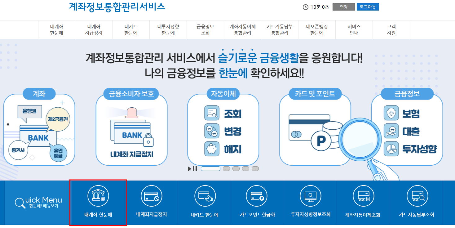 숨은 내돈 찾기 위해서는 금융결제원이 운영하는 계좌정보통합관리서비스 홈페이지에 접속해야 합니다.