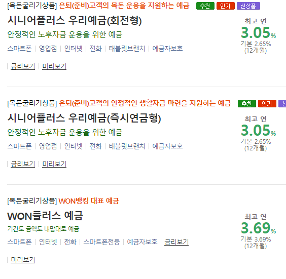 우리은행 1년정기예금 금리