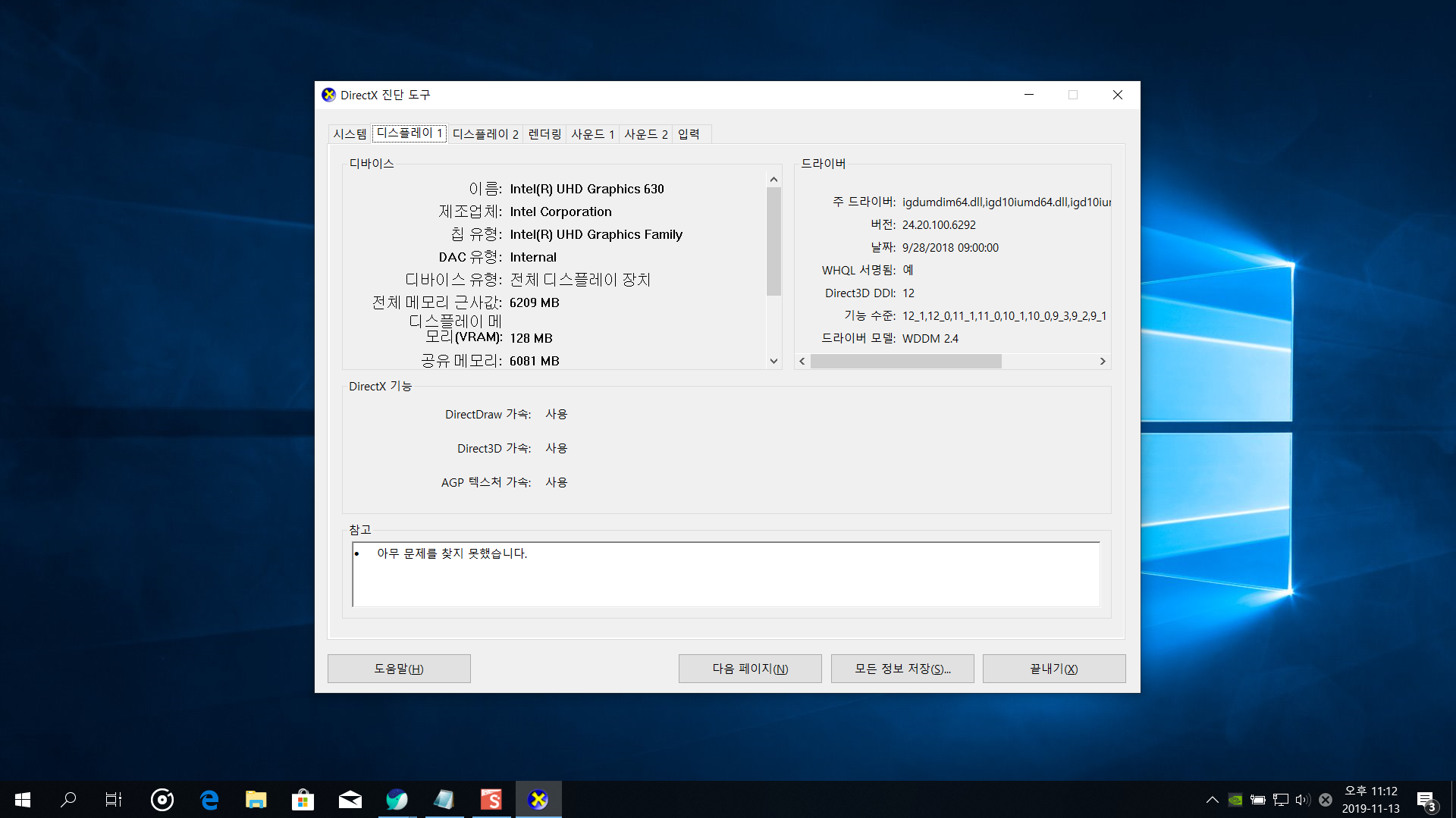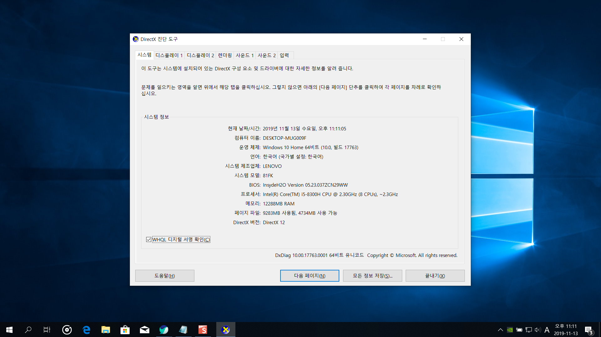dxdiag로 컴퓨터 사양확인