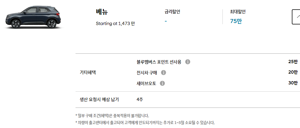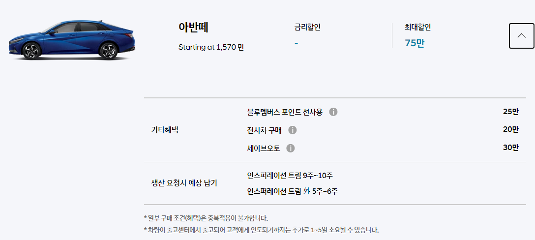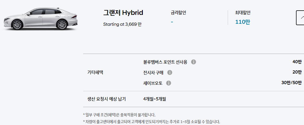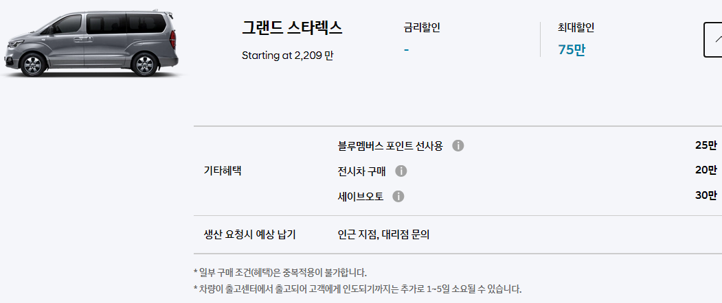 * 차량이 출고센터에서 출고되어 고객에게 인도되기까지는 추가로 1~5일 소요될 수 있습니다.