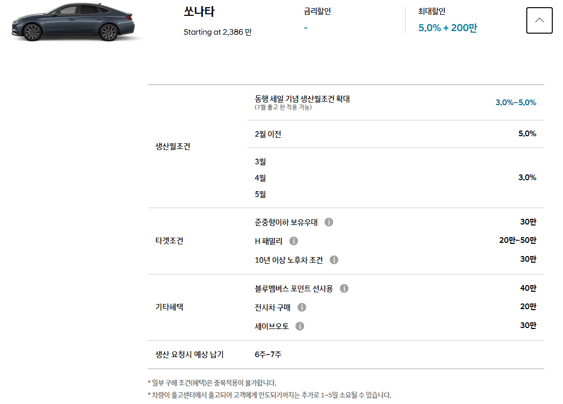 * 동행 세일 기념 생산 월 조건 확대 (7월 출고 한 적용 가능) : 3.0% ~ 5.0%