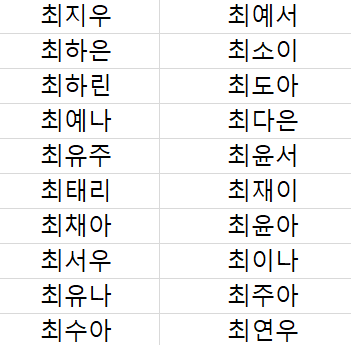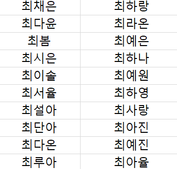 최씨 여자이름 모음 추천 해드리겠습니다. 여자 아기 이름 짓기 좋은 이름들을 알아보고 한글이나 한자 상관없이 자유롭게 작명 해보시기 바랍니다.