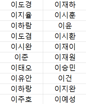 이씨 남자 이름 모음