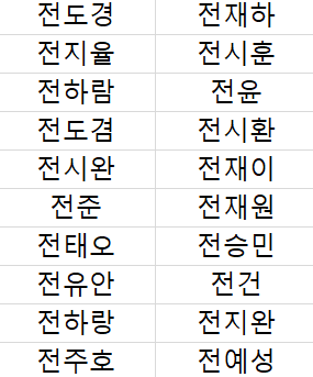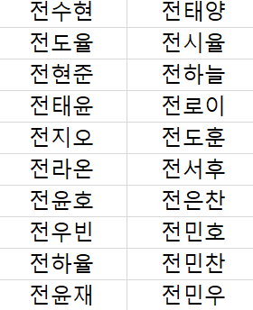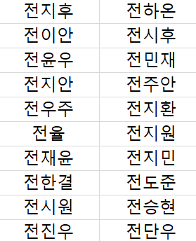 전씨 남자 이름 모음 추천 해드리겠습니다. 아기 이름 짓기, 개명 하기 좋은 이름들을 알아보고 한글, 한자 상관없이 자유롭게 작명 해보시기 바랍니다.